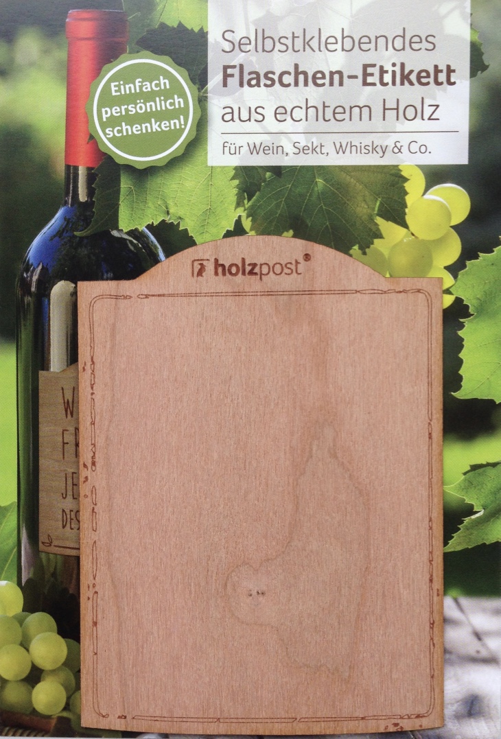 Flaschen-Etikett aus Kirschbaumholz