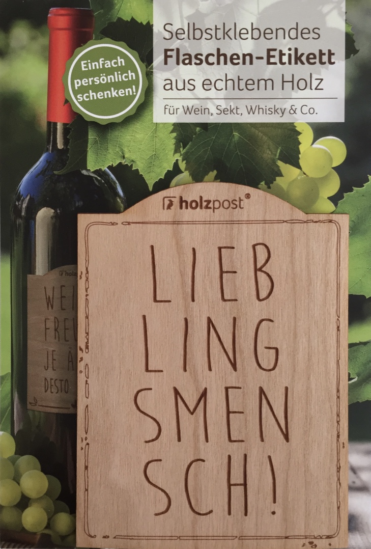 Flaschen-Etikett aus Kirschbaumholz