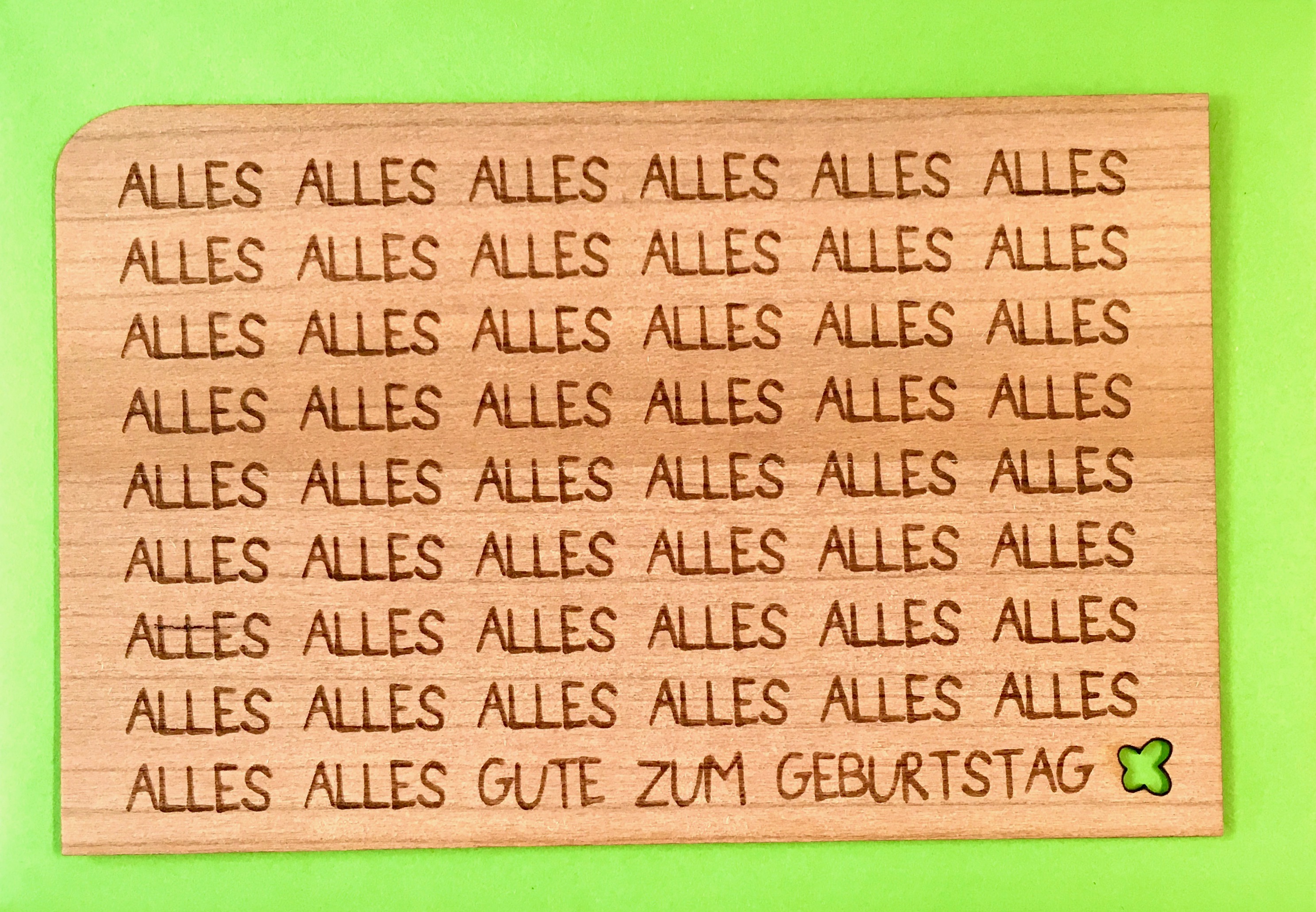 Grußkarte aus echtem Kirschbaumholz 14x9cm inkl. DIN C6 Umschlag! "Alles Gute zum Geburtstag"
