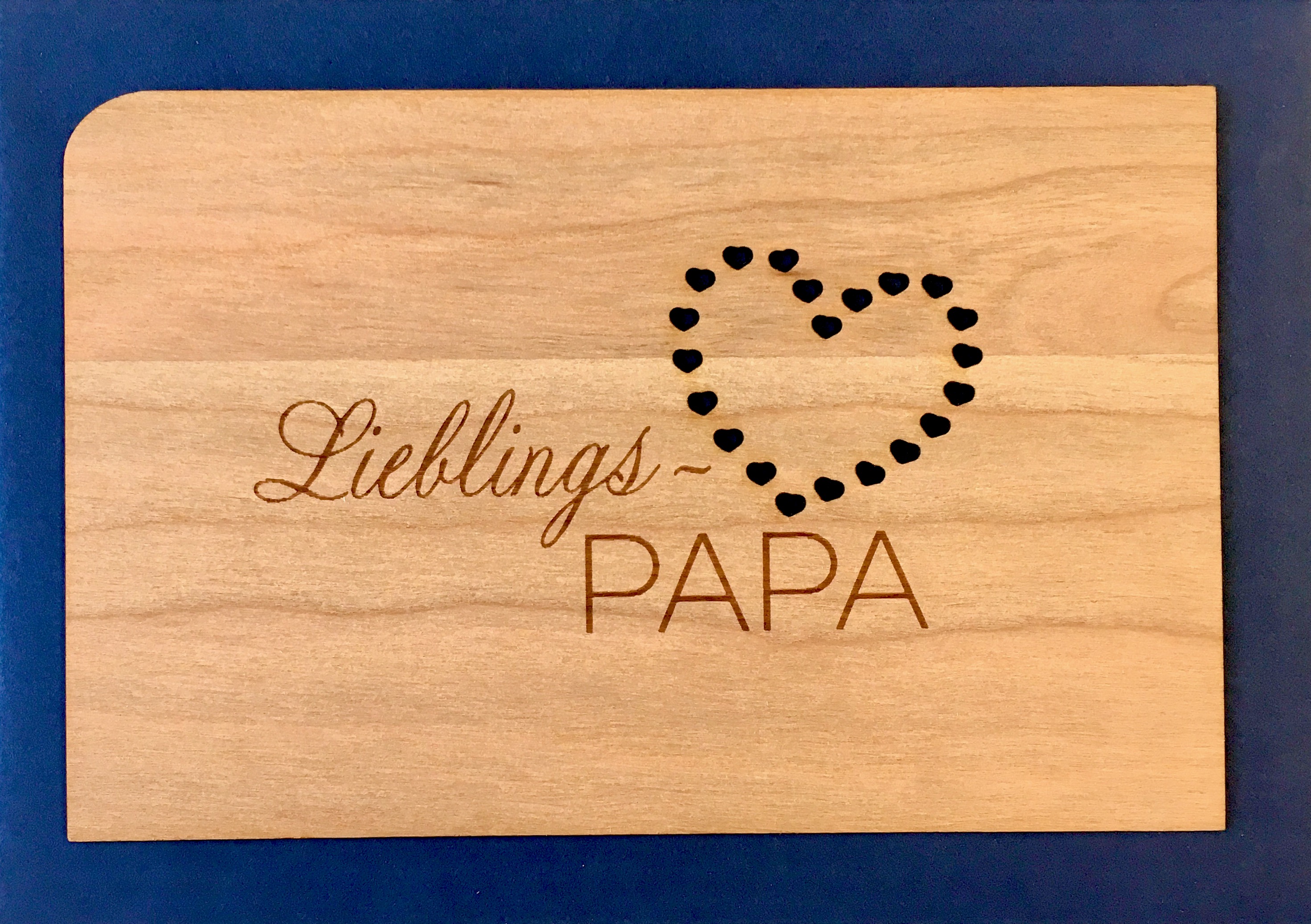 Grußkarte aus echtem Kirschbaumholz 14x9cm inkl. DIN C6 Umschlag! "Lieblingspapa"