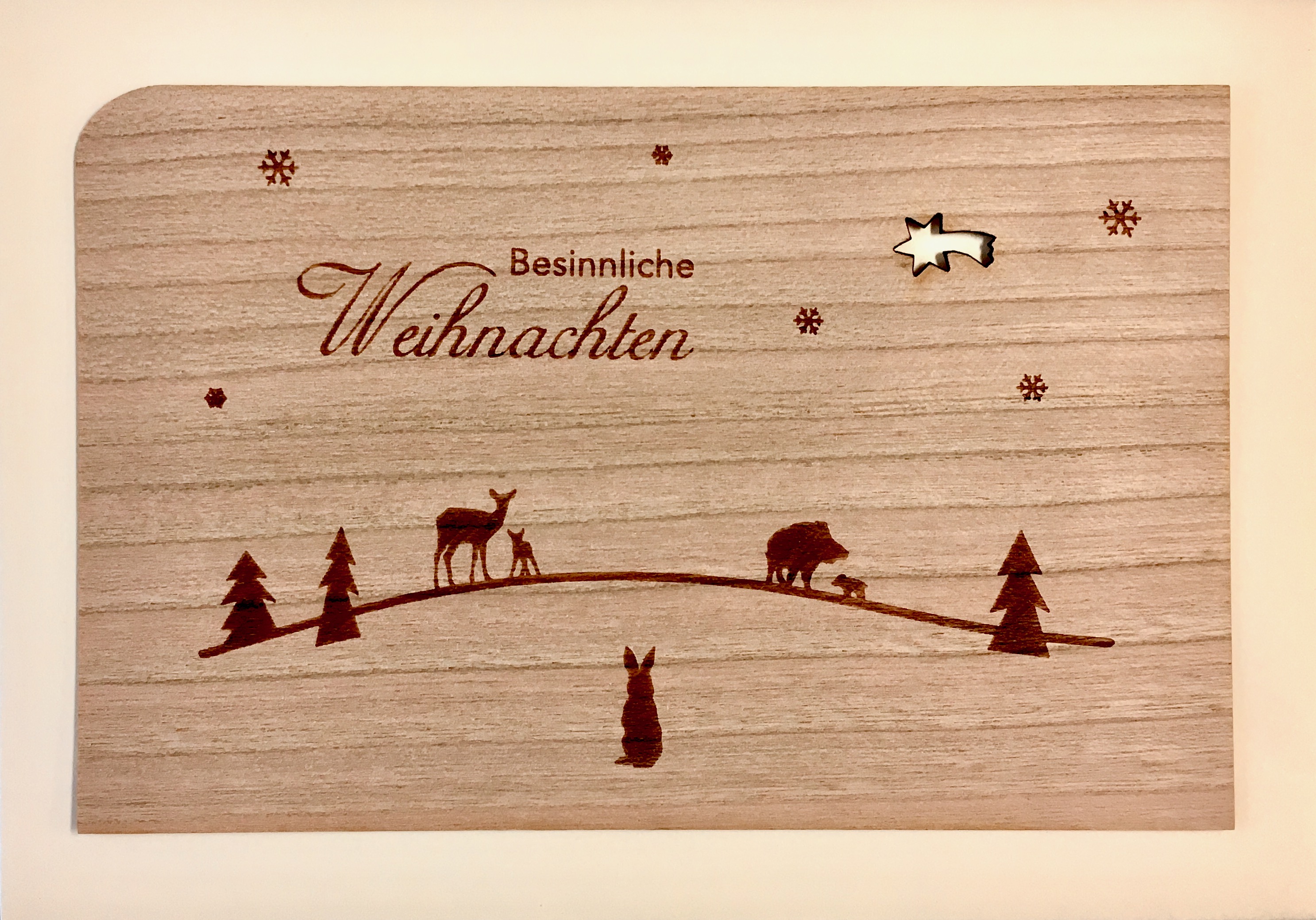 Grußkarte aus echtem Kirschbaumholz 14x9cm inkl. DIN C6 Umschlag! "Besinnliche Weihnachten"