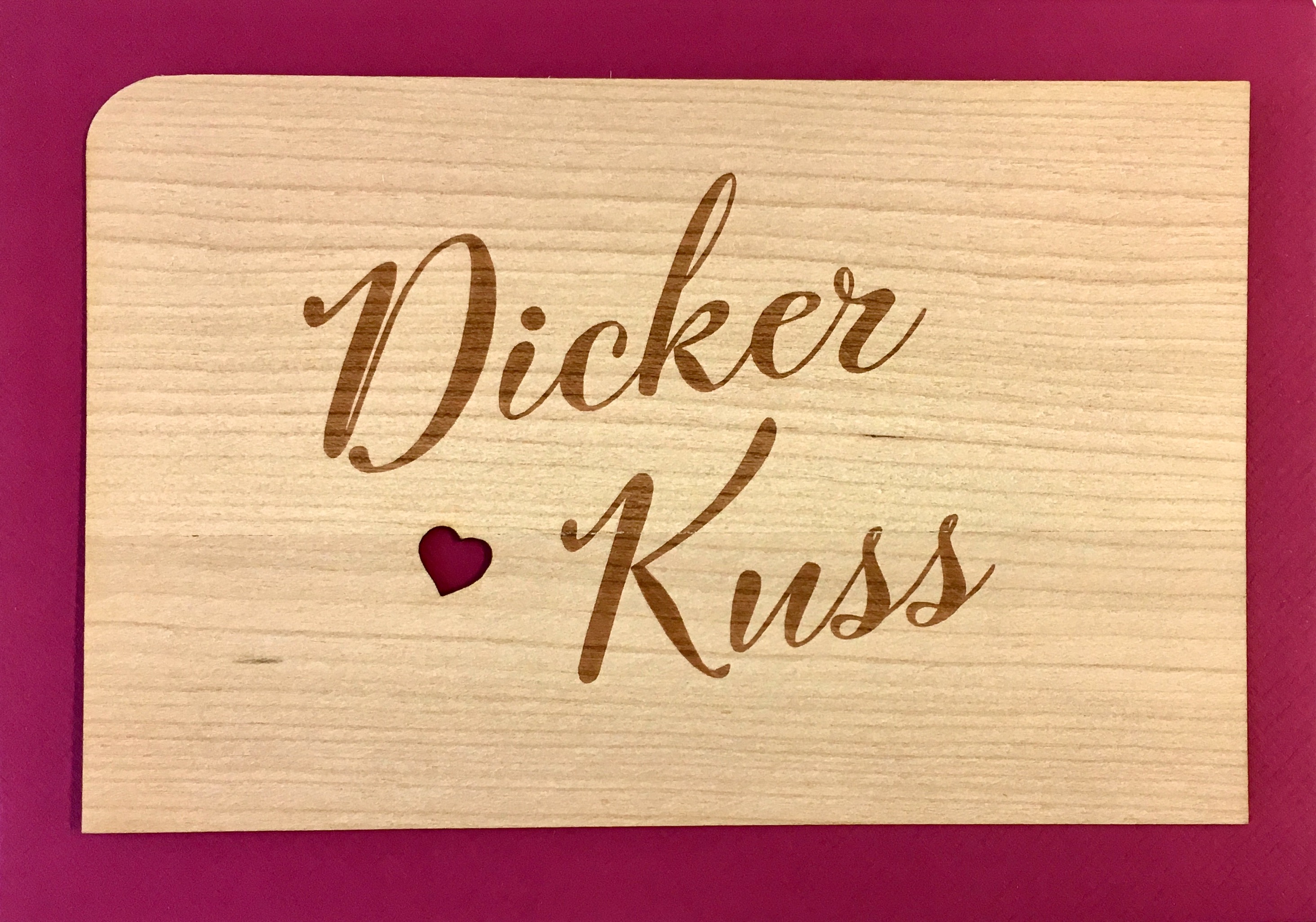 Grußkarte aus bestem ca. 1mm Kirschbaumholz Größe: 14x9cm inkl. DIN C6 Umschlag! "Dicker Kuss" EAN: 4260327940021