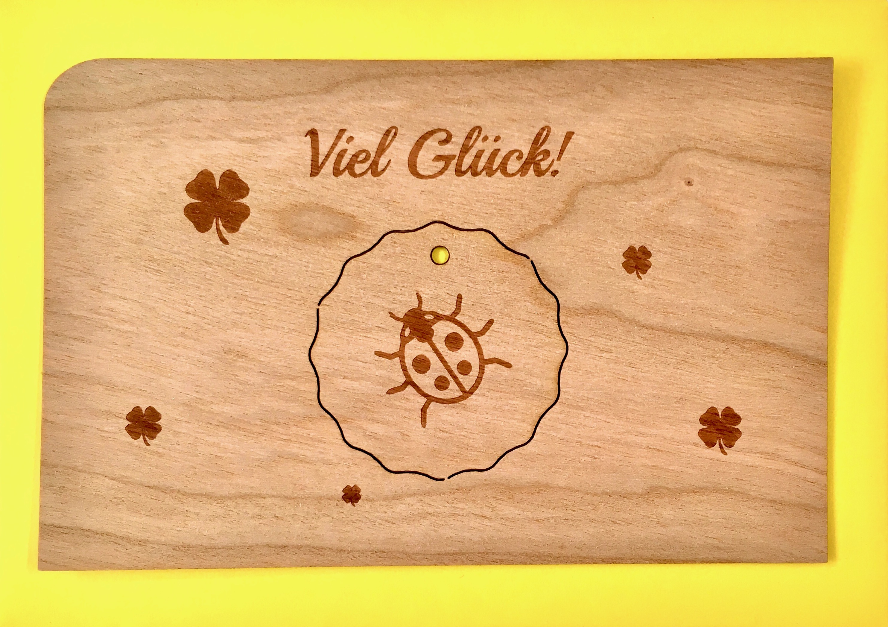 Grußkarte aus bestem ca. 1mm Kirschbaumholz Größe: 14x9cm inkl. DIN C6 Umschlag! "Viel Glück" EAN: 4260327940021
