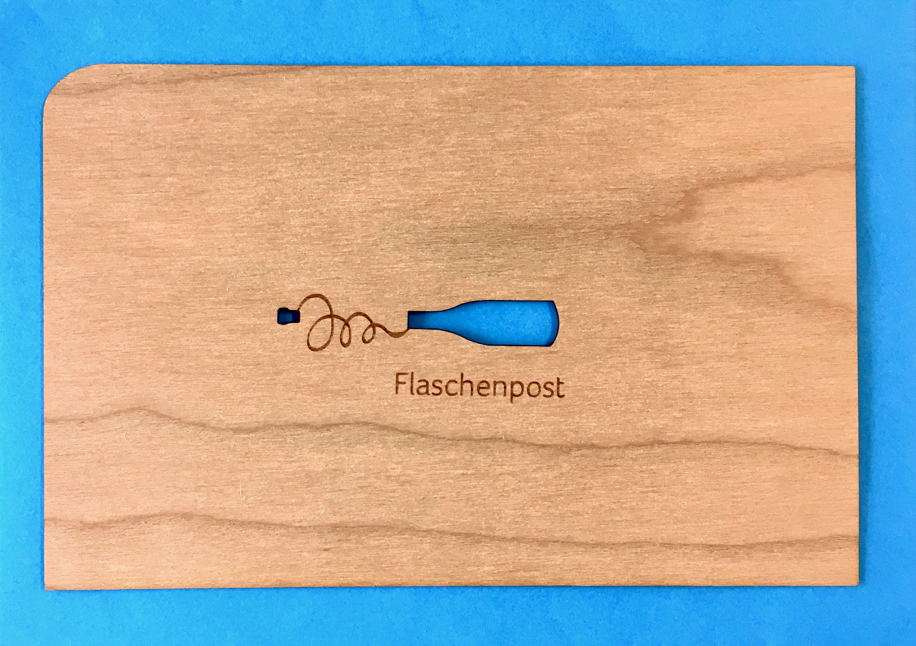 Grußkarte aus bestem ca. 1mm Kirschbaumholz Größe: 14x9cm inkl. DIN C6 Umschlag! "Flaschenpost" EAN: 4260327940021