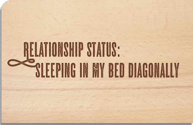 Größe: 14 x 9 cm, ca. 2 mm dick "RELATIONSHIP STATUS: SLEEPING IN MY BED DIAGONALLY"