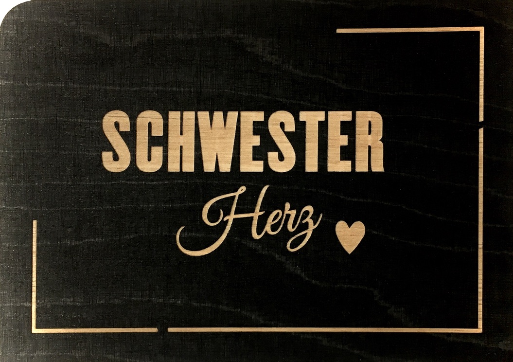 Schwarze Holzpostkarte aus bestem 3mm Birkenholz,
