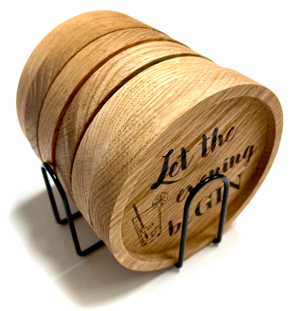 wähle zwischen 3 Sets unserer Untersetzer aus EICHE - graviert und geölt - d=11,2cm