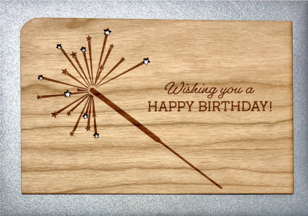 Grußkarte aus bestem ca. 1mm Kirschbaumholz Größe: 14x9cm inkl. DIN C6 Umschlag! "Wishing you a HAPPY BIRTHDAY" EAN: 4260327940021 *Für den Versand mit der Post, einfach als Standard Brief (bis 20g) frankieren!