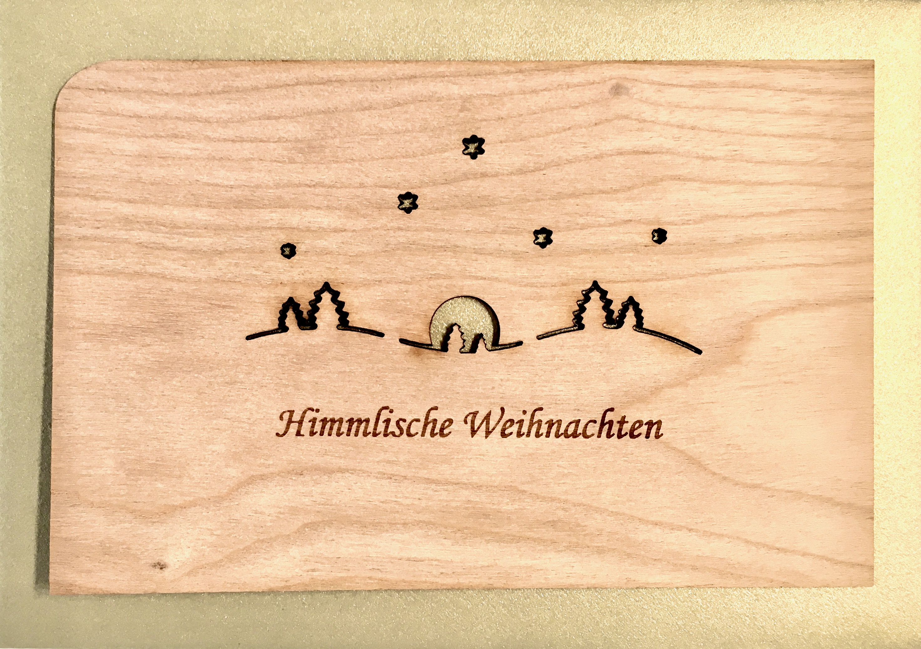 Grußkarte aus echtem Kirschbaumholz 14x9cm inkl. DIN C6 Umschlag! "Himmlische Weihnachten"