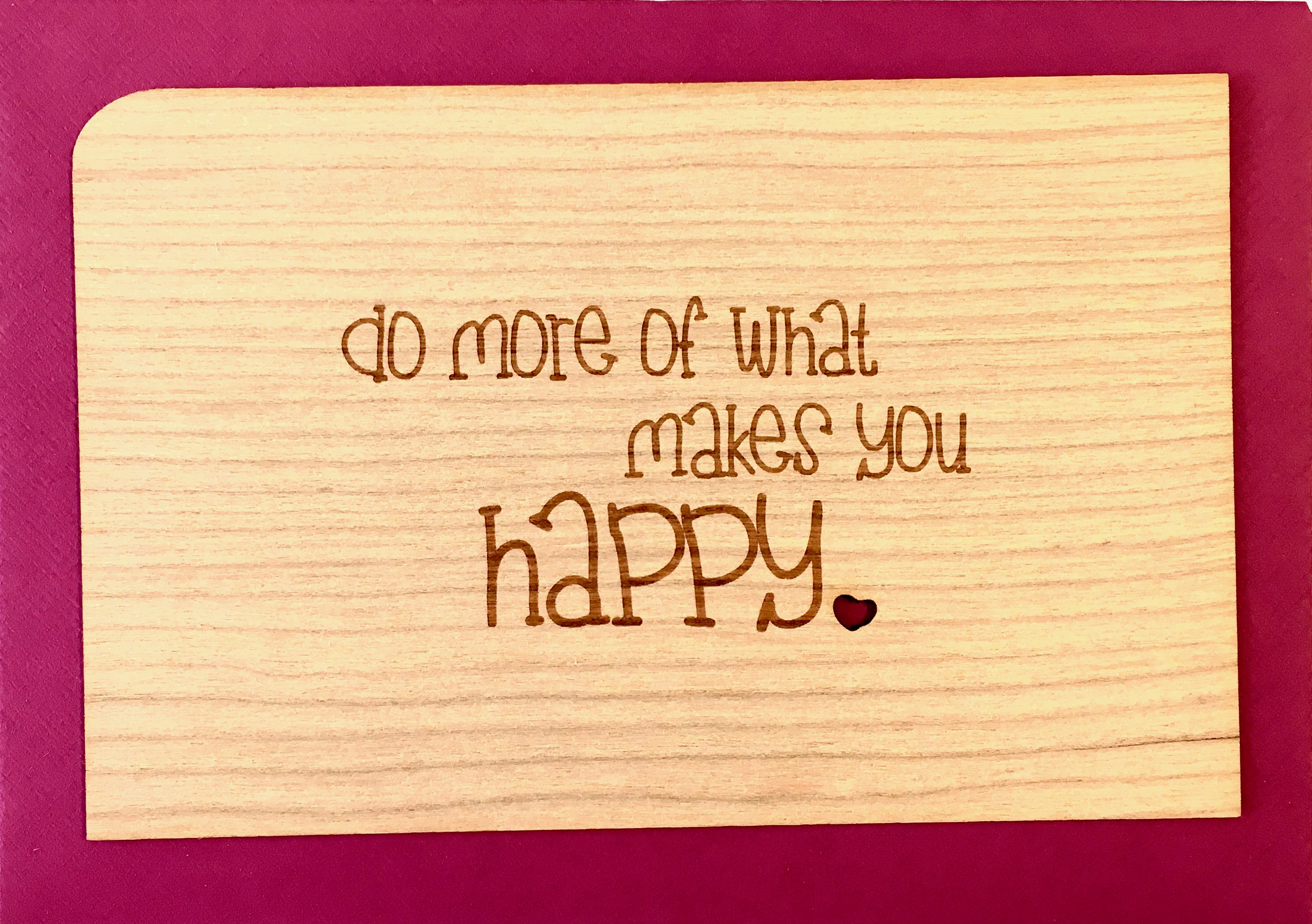 Grußkarte aus echtem Kirschbaumholz 14x9cm inkl. DIN C6 Umschlag! "do more of what makes you happy"