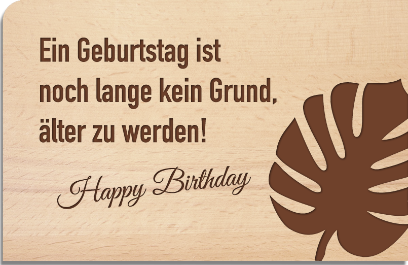 Größe: 14x9 cm, ca. 2 mm dick "Ein Geburtstag ist noch lange kein Grund, älter zu werden. Happy Birthday"