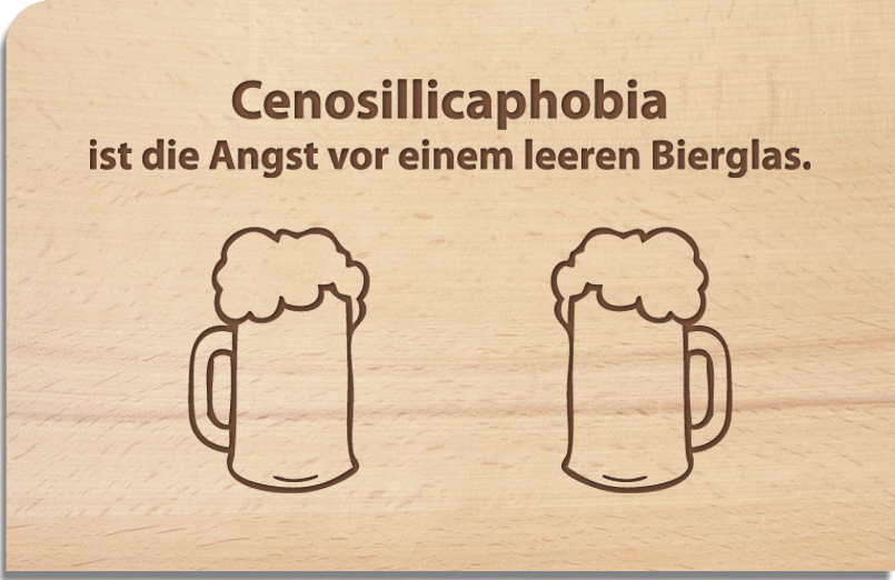 Größe: 14 x 9 cm, ca. 2 mm dick "Cenosillicaphobia ist die Angst vor einem leeren Bierglas."