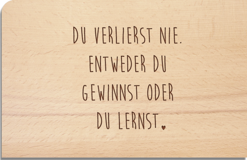 Größe: 14 x 9 cm, ca. 2 mm dick "Du verlierst nie. Entweder Du gewinnst oder Du lernst."