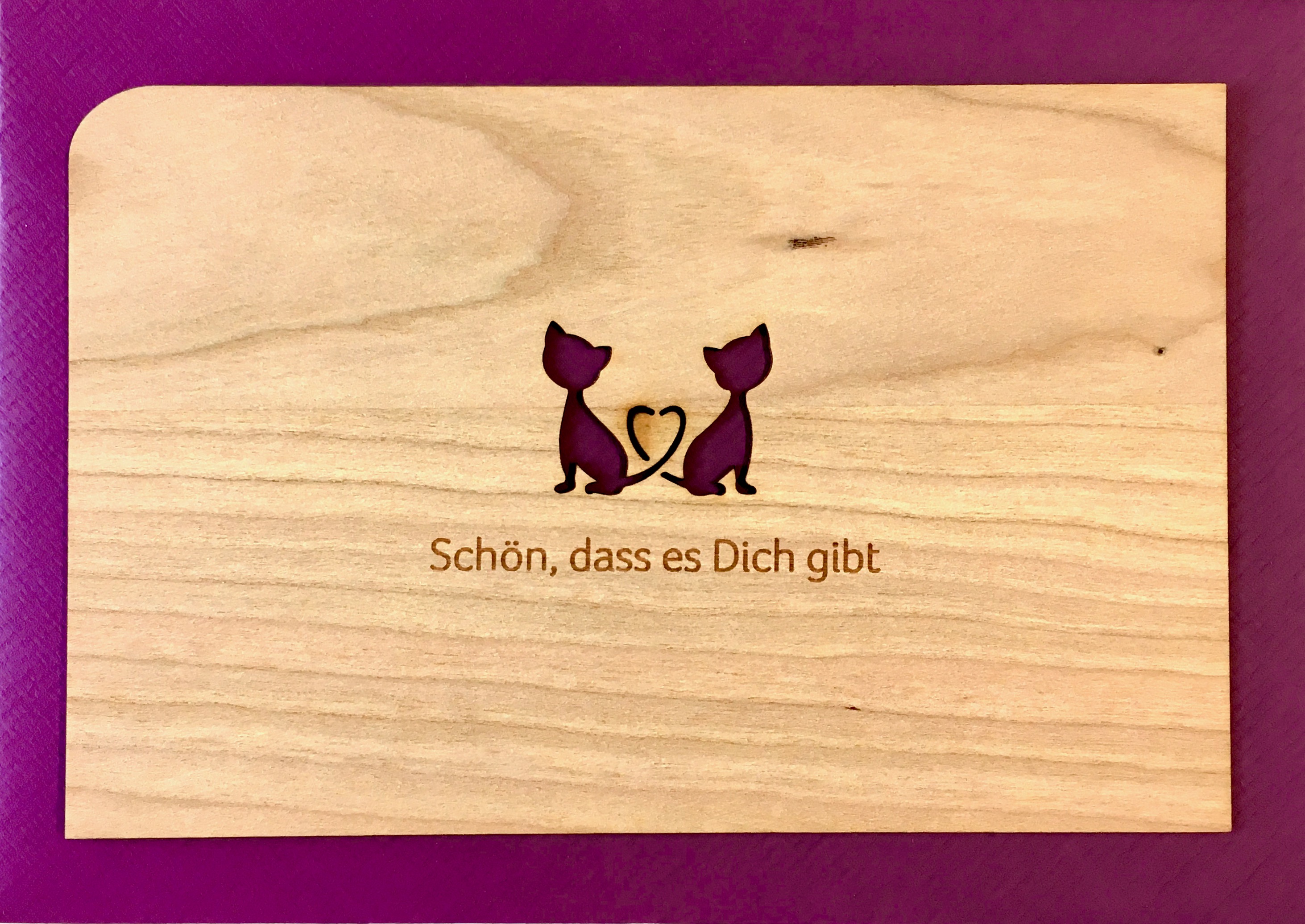 Grußkarte aus echtem Kirschbaumholz 14x9cm inkl. DIN C6 Umschlag! "Schön, dass es Dich gibt"