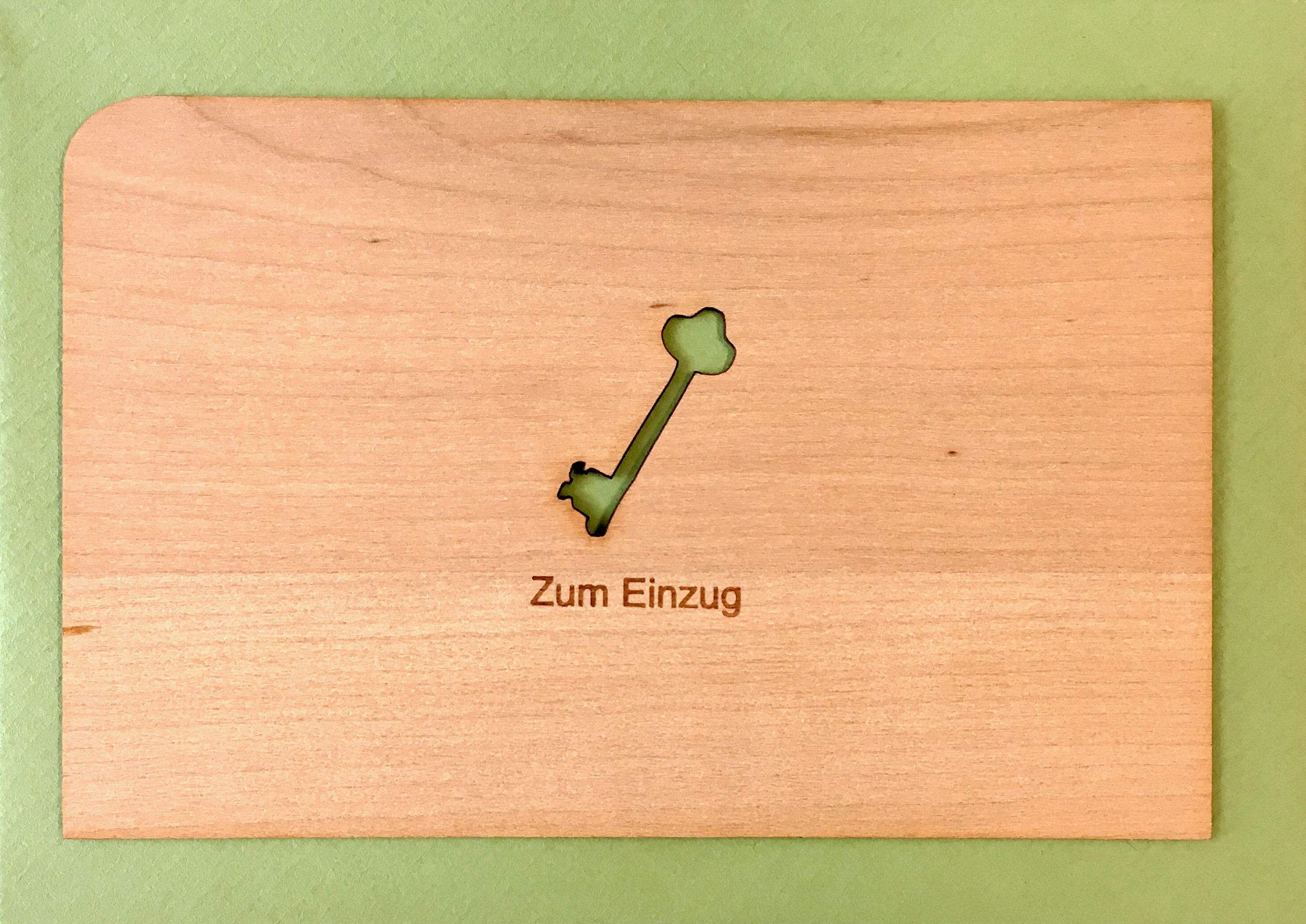 Grußkarte aus echtem Kirschbaumholz 14x9cm inkl. DIN C6 Umschlag! "Zum Einzug"